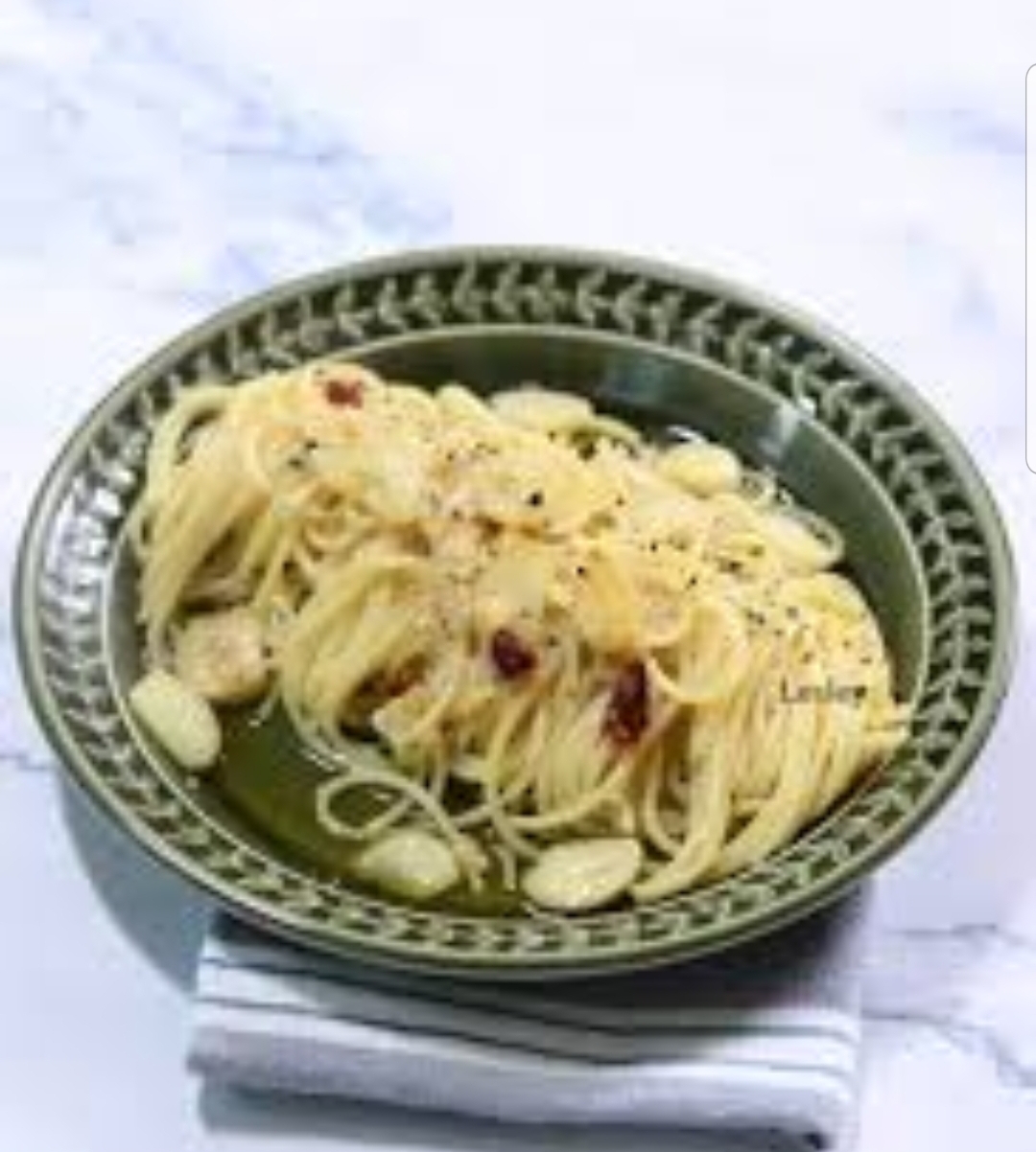• 스파게티면 100g • 마늘 8~12쪽 (슬라이스) • 청양고추 0.5~1개 • 페페론치노 3~5개 • 올리브오일 5~6 스푼 • 버터 1/3 큰술 • 면수 7~8 스푼 • 소금 약간 • 파슬리 or 바질(선택) • 파마산 치즈(선택)