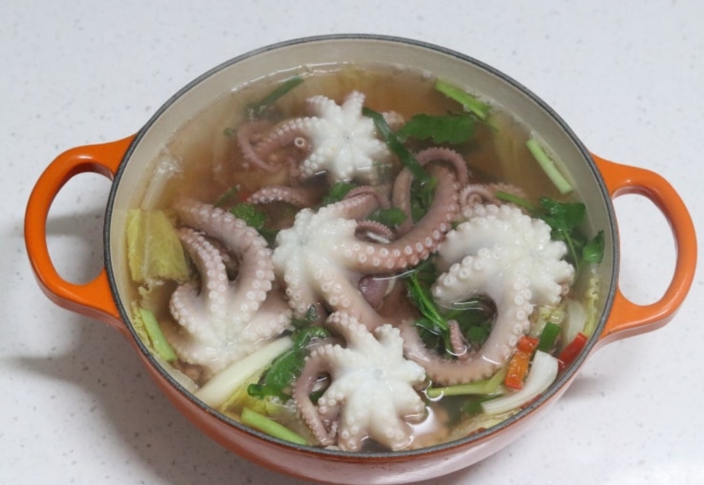 연포탕에서 가장 흔한 실수예요. 낙지는 열에 약한 재료라, 오래 끓이면 질겨지고 탄력 없이 뻣뻣해집니다. 연포탕은 낙지를 ‘끓이는 요리’가 아니라 ‘잠시 익히는 요리’에 가깝습니다. 육수가 끓기 시작할 때 낙지를 넣고 2~3분 정도만 익혀야 부드럽고 쫄깃한 식감이 살아납니다. 그 이상 끓이면 국물은 비릿해지고 낙지는 고무처럼 질겨져요. 가장 좋은 방법은 낙지를 끓는 국물에 넣었다가, 잠시 익은 후 건져내고, 마지막에 다시 넣는 ‘두 번 넣기’ 방식입니다.