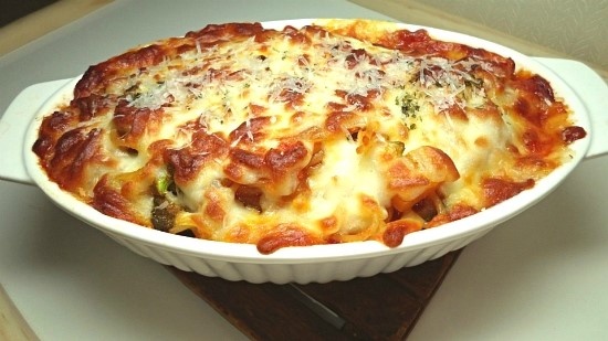 프라이팬에 소스를 만들고, 면을 볶고, 치즈까지 얹어서 오븐에 넣었는데— 오븐 안에서 치즈가 녹아내리는 걸 바라보는 그 몇 분이 엄청 설레더라고요.